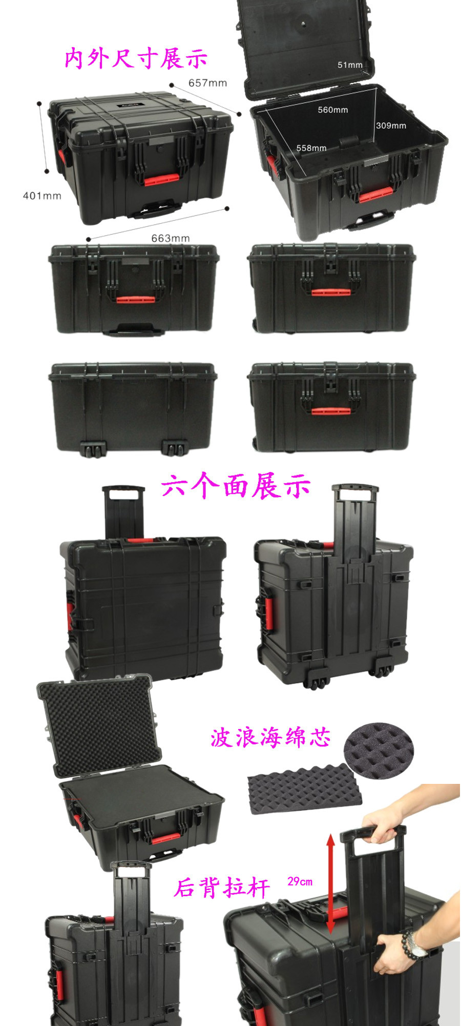 簡要說明:廣泛用于傳媒、公安、消防、軍隊(duì)、航空、戶外攝影、野外考察、科學(xué)探測等眾多領(lǐng)域的高端儀器、儀表。具有高強(qiáng)度、高抗壓沖擊、防潮、絕對(duì)密封、防塵、防水等特點(diǎn)。產(chǎn)品材質(zhì):ABS原料,箱體采用高抗沖擊的高分子聚合材料一體注塑成型,密封采用扁型彈性發(fā)泡密封橡膠條,確保防水氣密,所有較軸均采用不銹鋼材質(zhì)。