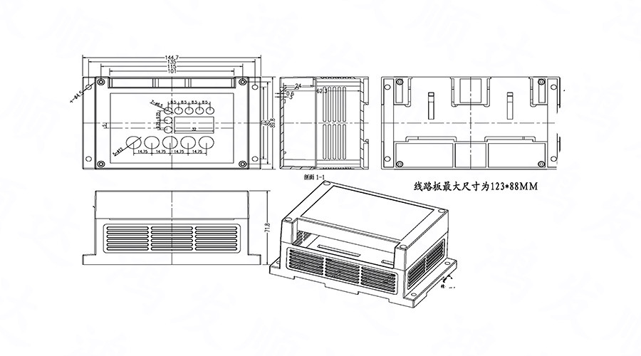 產(chǎn)品用途:廣泛應(yīng)用于電子行業(yè)中各種PLC模塊電路、控制器單元、配電器模塊等 。具有完全絕緣性保護(hù)、散熱性良好等特點(diǎn)。均采用ABS/PC原料生產(chǎn),符合ROHS環(huán)保標(biāo)準(zhǔn)、性能好、耐高溫,不加入任何再生料??筛鶕?jù)客戶要求重新開模具。