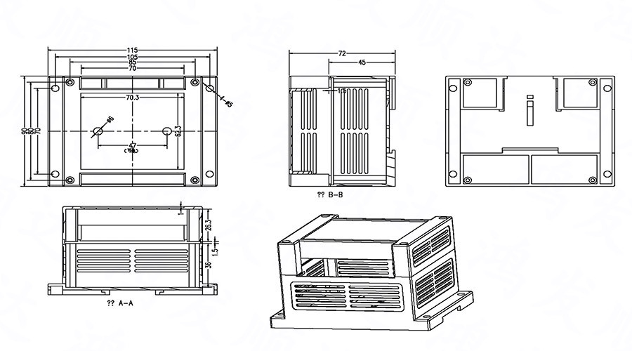 產(chǎn)品用途:廣泛應(yīng)用于電子行業(yè)中各種PLC模塊電路、控制器單元、配電器模塊等 。具有完全絕緣性保護(hù)、散熱性良好等特點。均采用ABS/PC原料生產(chǎn),符合ROHS環(huán)保標(biāo)準(zhǔn)、性能好、耐高溫,不加入任何再生料??筛鶕?jù)客戶要求重新開模具。